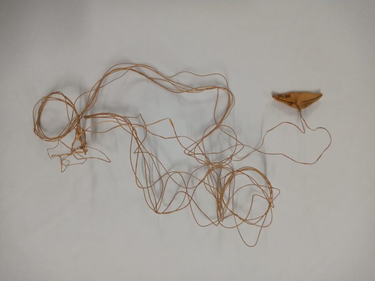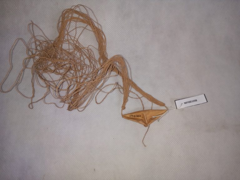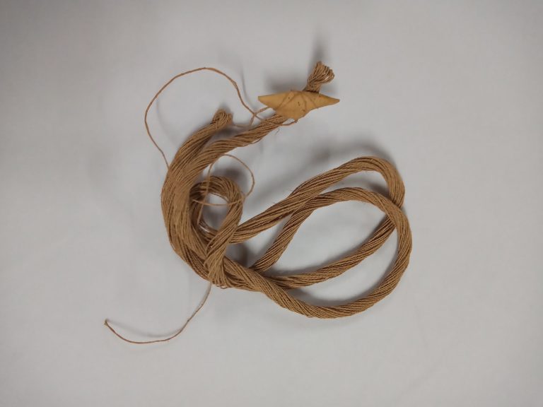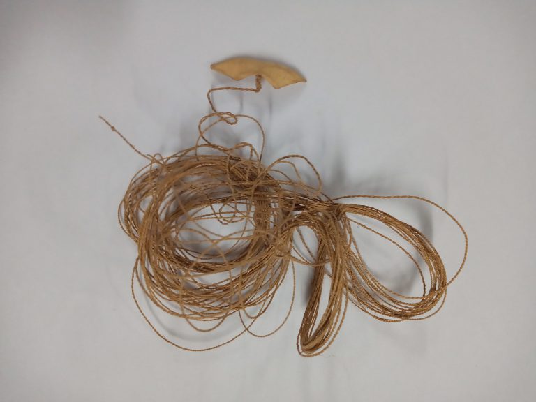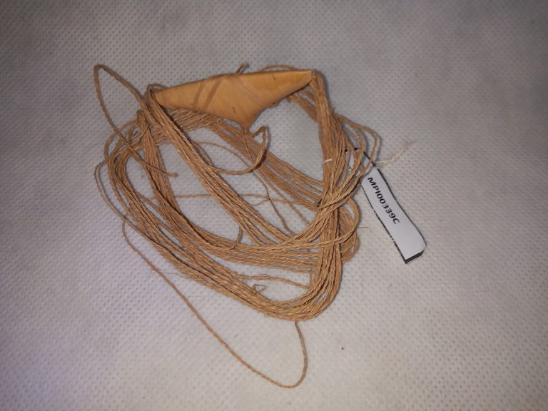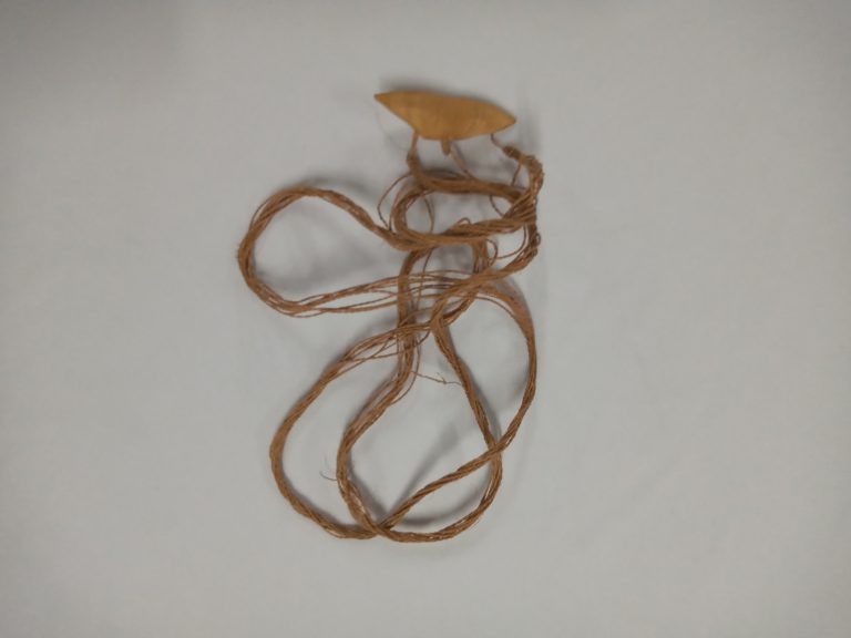 Designação em língua bakairi para uma miniatura de tanga feminina, de formato triangular, confeccionada de entrecasca de árvore, de cujo vértice pende um cordel perineal de fio de...