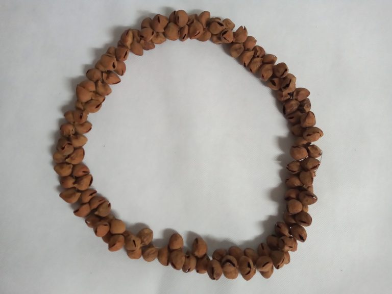 4 de junho de 2025 por Hellen Christyan Macedo de Oliveira Leia mais...Colar constituído de uma enfiadura em cordel de fibra de palmeira de cápsulas (ou sementes) de fruto marrom claro com uma abertura em “v” na ponta solta de...