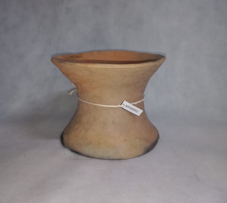 Suporte em cerâmica usado para equilibrar a panela ao lume. Trempe vasado em forma de ampulheta. Apresenta manchas provocadas pelo cozimento. Achas de lenha são colocadas entre as...