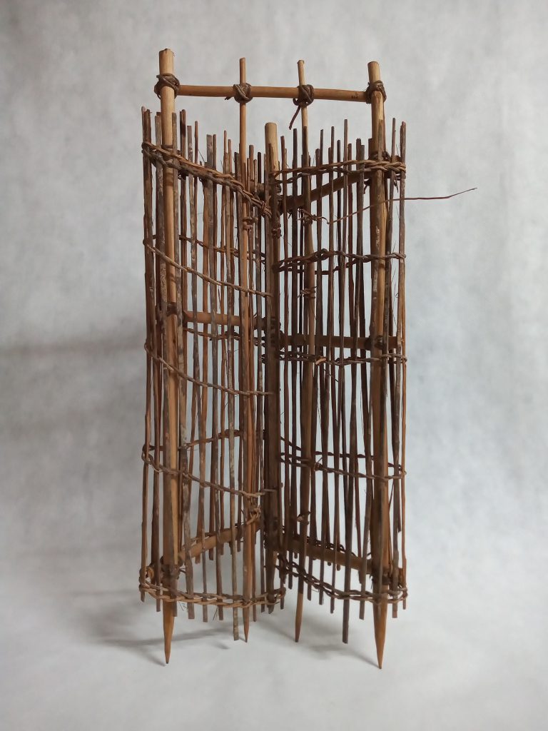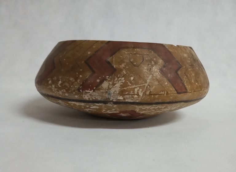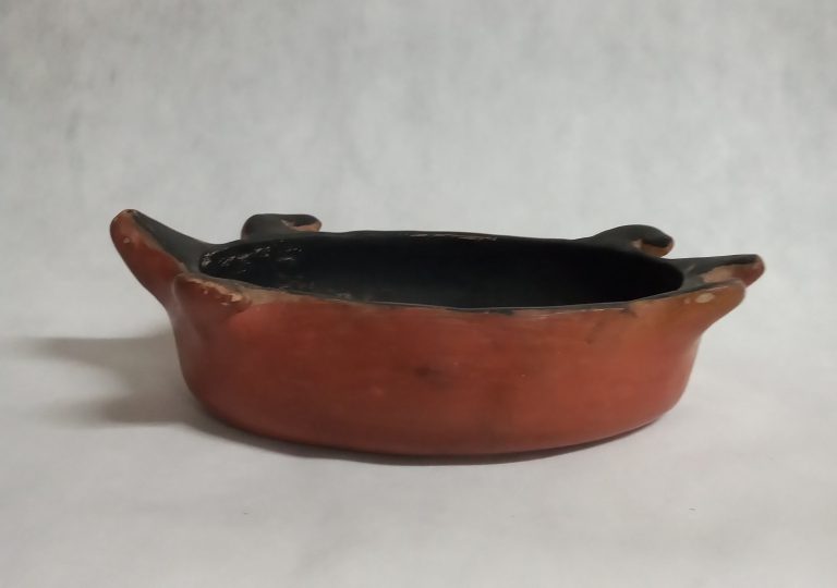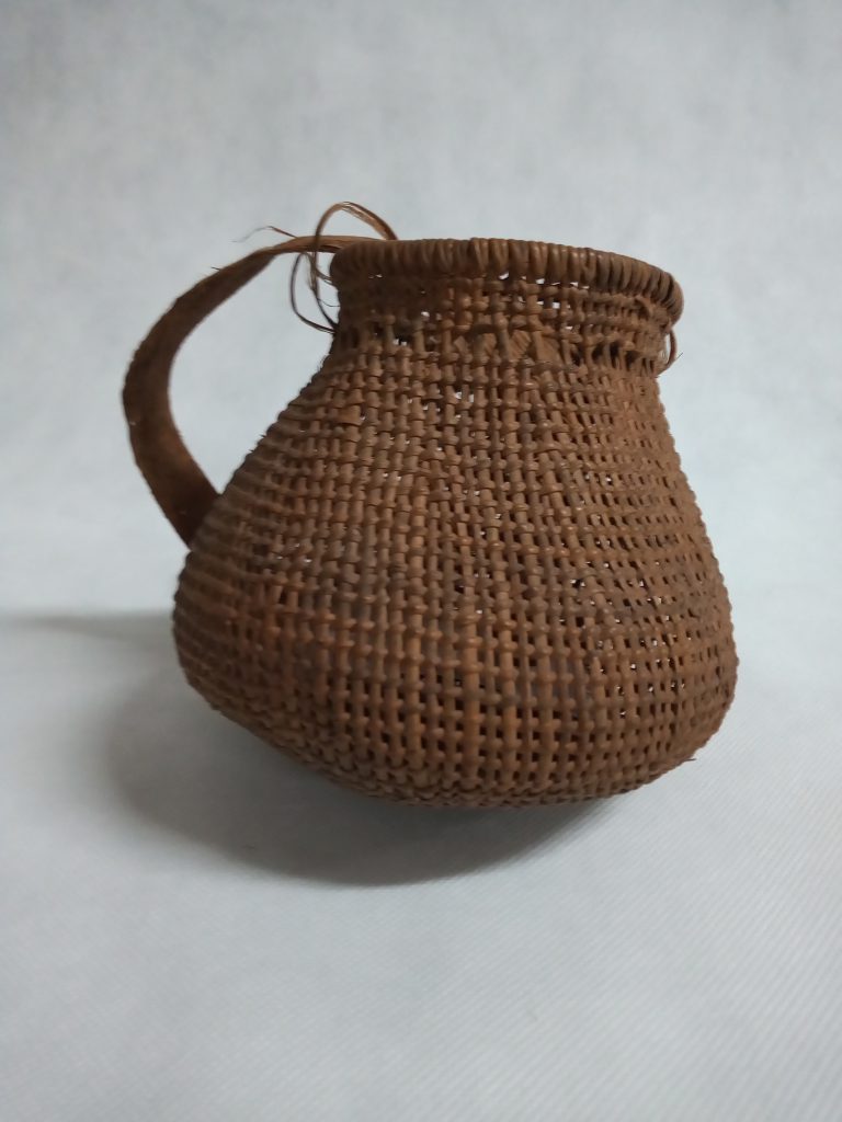 Cucurbitácea piriforme cortada ao meio e impermeabilizada internamente com resina de árvore e carvão. A parte oblonga serve de cabo e a redonda de concha para levar o...