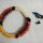 Aro confeccionado com uma lasca de taquara revestida numa das faces com plumas vermelhas, amarelas e negras do papo do tucano (Ramphastus sp), presas ao aro com amarrilho de fio de algodão (emplumação em pétala: com o lado avesso para fora).