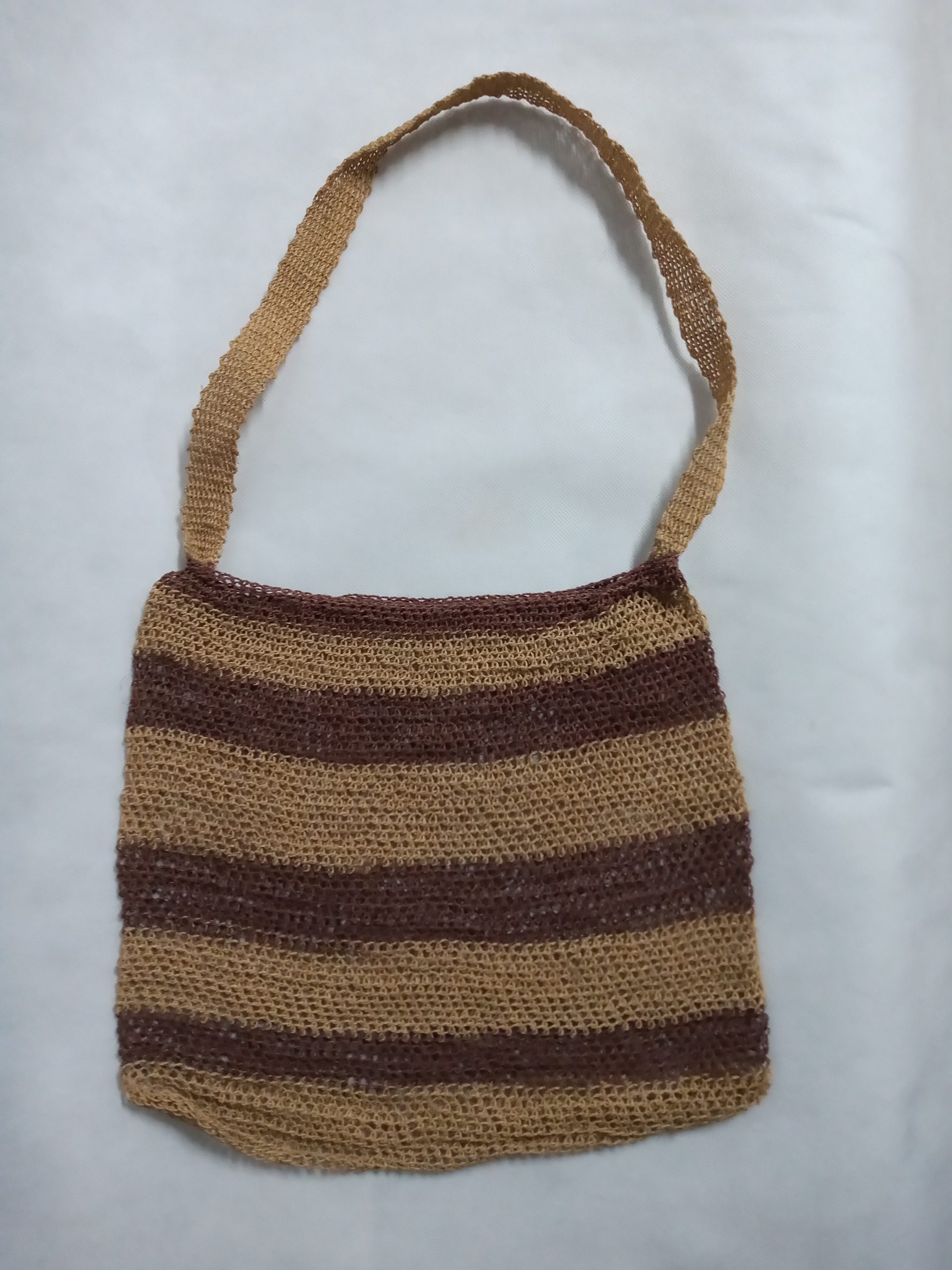 Coleção Memorial dos Povos Indígenas Item Bolsa tecida Documento MPI00232 Baixar Metadados ColeçãoColeção Berta RibeiroDenominação/LinguagemBolsaTítuloBolsa tecidaAutoriaAutoria DesconhecidaEtniaTikunaClassificaçãoEquipamento de uso pessoal > Produto de origem vegetal > Bolsa, sacola, tecelagemDescriçãoBolsa tecida com fio tucum (Astrocaryum sp) segundo a técnica de enlace circunscrito (trabalho em malha). Faixas horizontais em marrom (cipó-de-tinta) decoram o recipiente. Provida de alça para carregar.Dimensão (cm)70 cm (A) x 40 cm (L)Peso (gramas)220Material/técnicacipó de tinta | tecelagem | tucumLocal de produçãoRio Solimões, Amazonas, BrasilData de produçãoDesconhecidaCondições de reproduçãoNão há informação Continue navegando Capuz de cobre-orelha Bolsa tecida Voltar para a página de itens