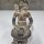 Estatueta temático-figurativa modelada em barro representando figura humana tricéfala, sentada com as mãos sobre os joelhos. Caracterizada etnicamente pelo corte de cabelo, pintura corporal, tanga de entrecasca e seios, indicando tratar-se de mulher.