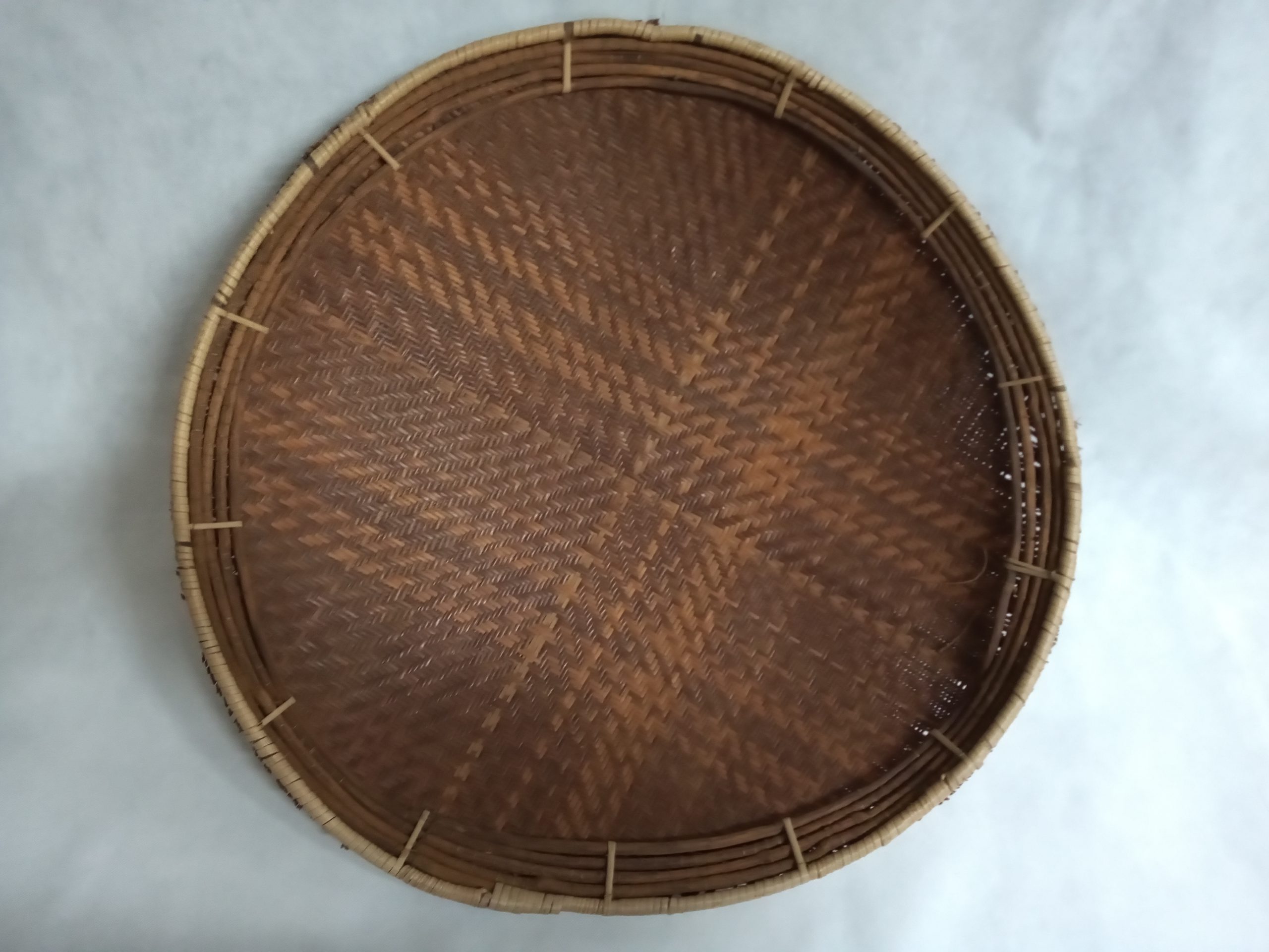 Cesto tigeliforme (formato meia calota) confeccionado com talas de arumã (Ischnosiphon sp) em trançado sarjado. Acabamento com aros múltiplos, tipo Tukano. Utilizado com recipiente e para servir alimentos sólidos. Aro de Desmoncus polyacanthos. Para os Desãna é chamado wehe kulu.