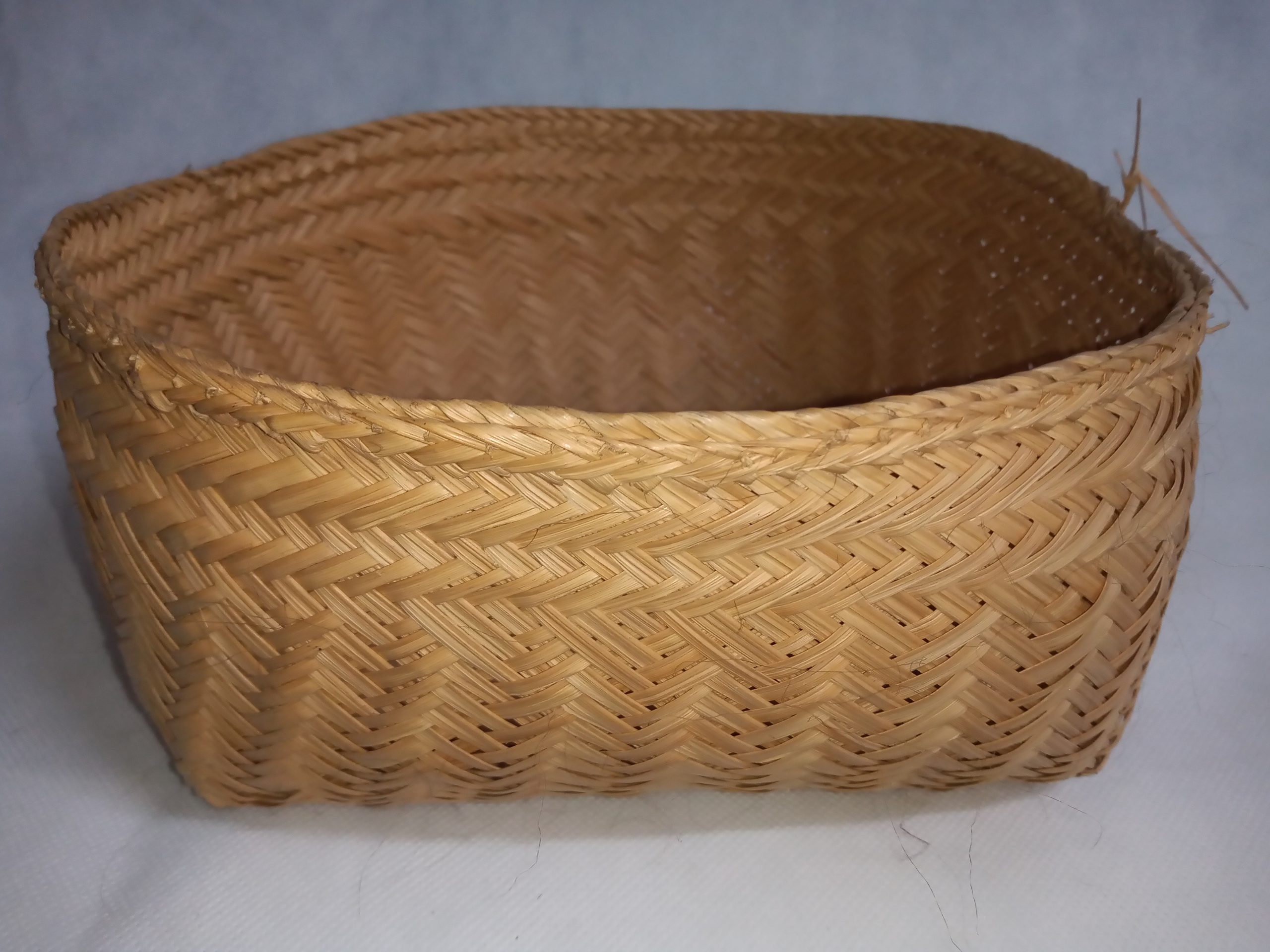 Coleção Memorial dos Povos Indígenas Item Cesto tigeliforme Documento MPI00108 Baixar Metadados ColeçãoColeção Berta RibeiroDenominação/LinguagemCestoTítuloCesto tigeliformeAutoriaAutoria DesconhecidaEtniaAraraClassificaçãoEquipamento para uso doméstico > Produto de origem vegetal > Cesto, cestaria, trançadoDescriçãoCesto tigeliforme arredondado com parede e borda extrovertidas. Acabamento com ourela dupla tipo txikao. Confecção em folíolo do olho do tucum, como começo “umbigo em olho” (Idêntico ao n. 186 dos Ipeng).Dimensão (cm)12 cm (A) x 26 cm (D)Peso (gramas)150Material/técnicapalha de tucum | trançadoLocal de produçãoPará, BrasilData de produçãoDesconhecidaCondições de reproduçãoNão há informação Continue navegando Cesto paneiriforme Colar contas de caramujo Voltar para a página de itens