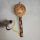 perpassa o corpo fechando as perfurações e prendendo pequenos corpos (sementes, pedras) dentro da cabaça que, agitada, produz som. Haste passante forma empunhadura e pontal com acabamento de fixação com cerol. Empunhadura revestida de taliscas de taquara com arremate de fios de fibra vegetal. Pomo da empunhadura perfurado, indicando que pode ter existido alça. Cabaça decorada em entalhe com formas geométricas."