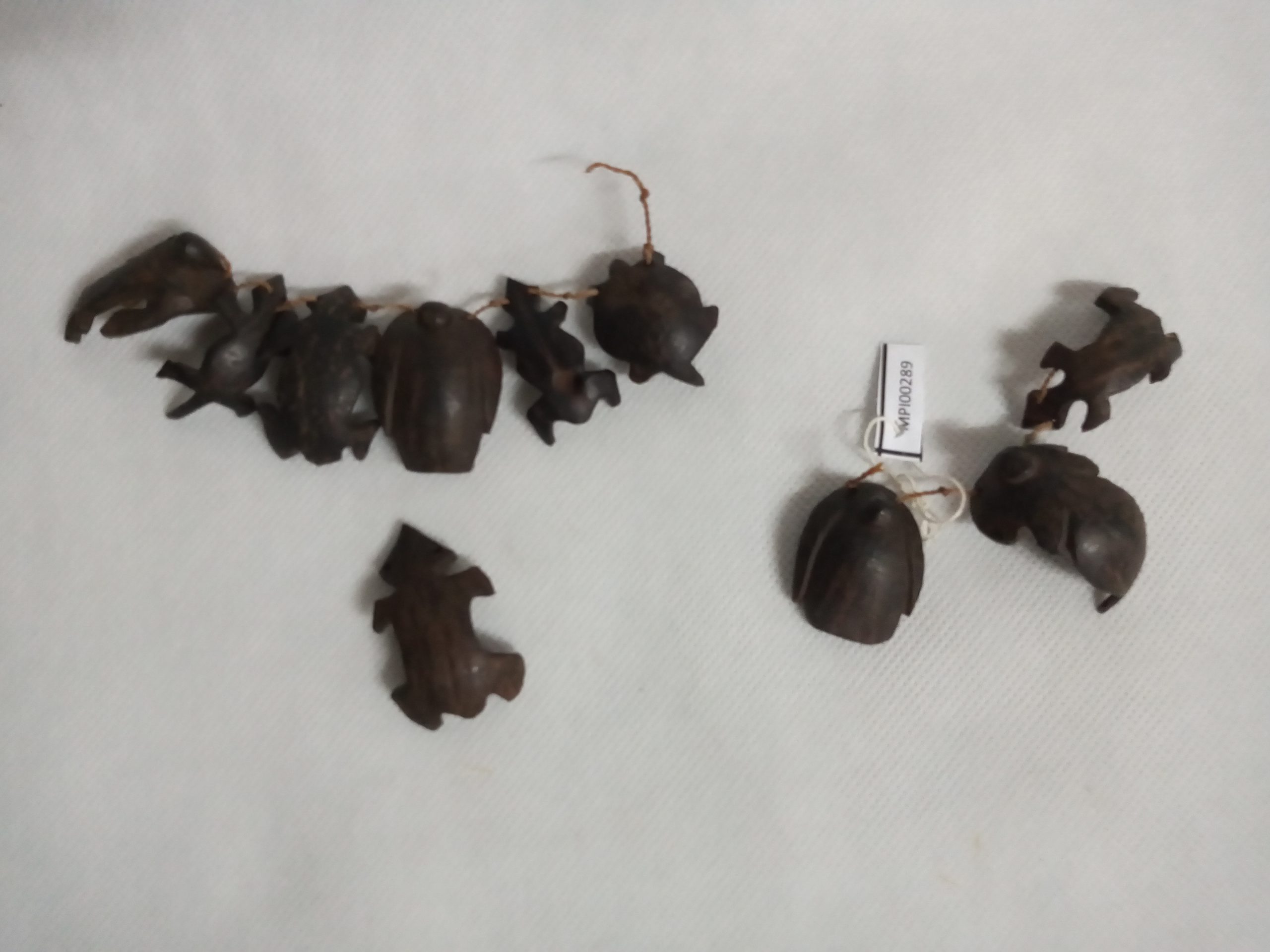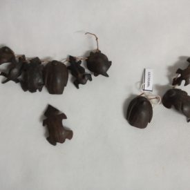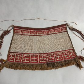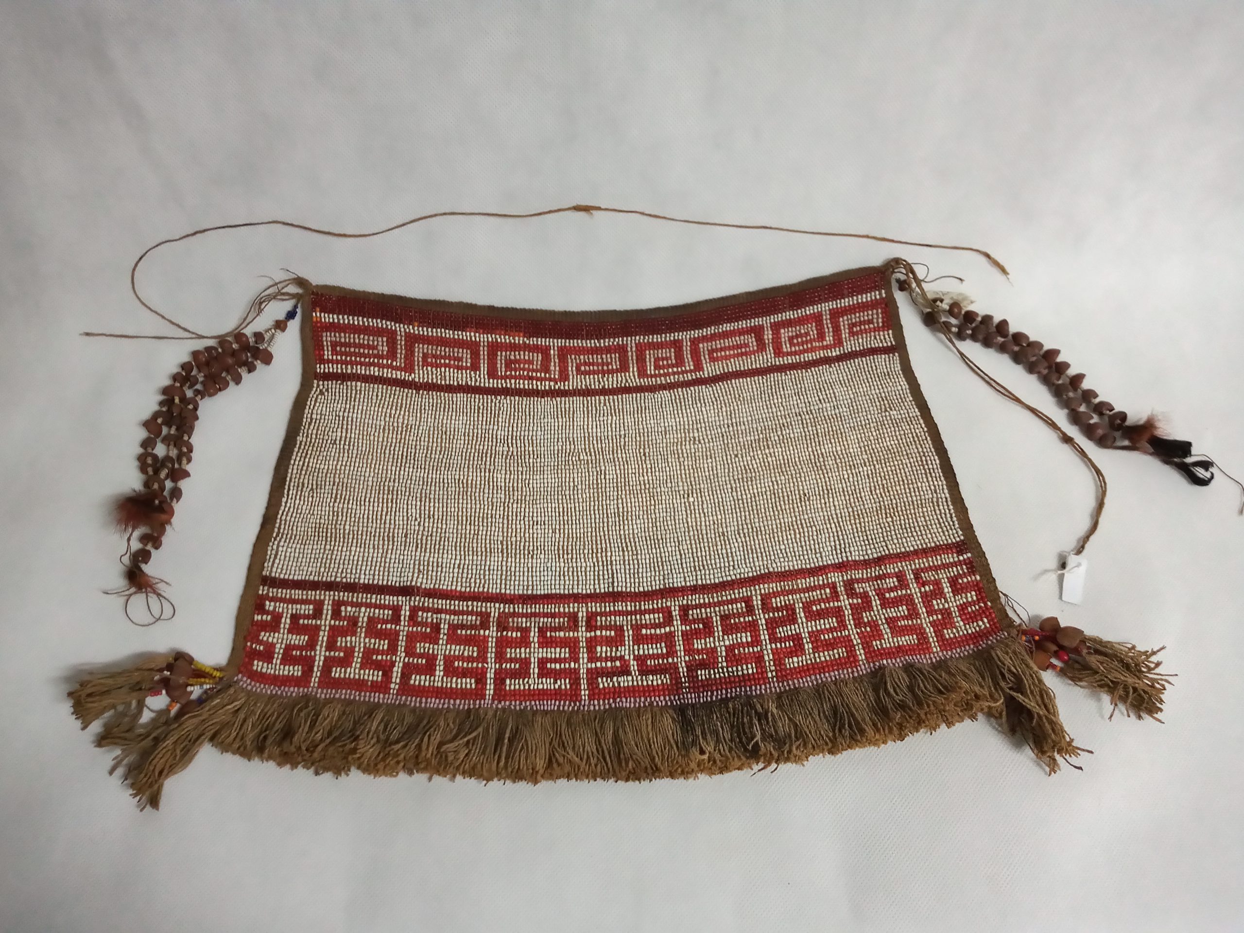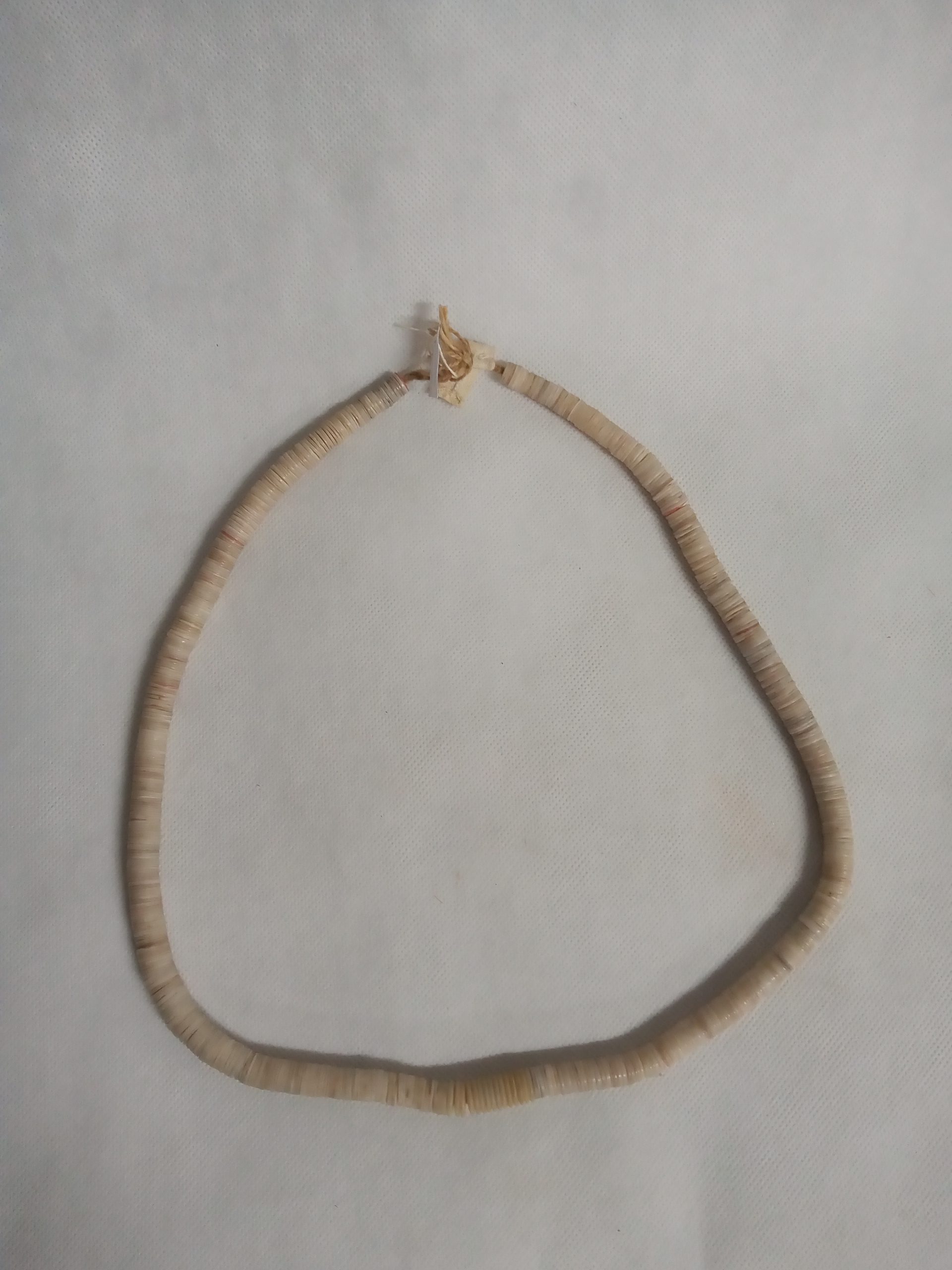 Cinto de contas redondas recortadas da casca de caramujo do campo, na forma de disco, com um furo no centro por onde passa o fio condutor. Usado como colar pelas mulheres, como cinto pelos homens. Especialidade dos grupos de língua Karib do Parque Indígena do Xingu.