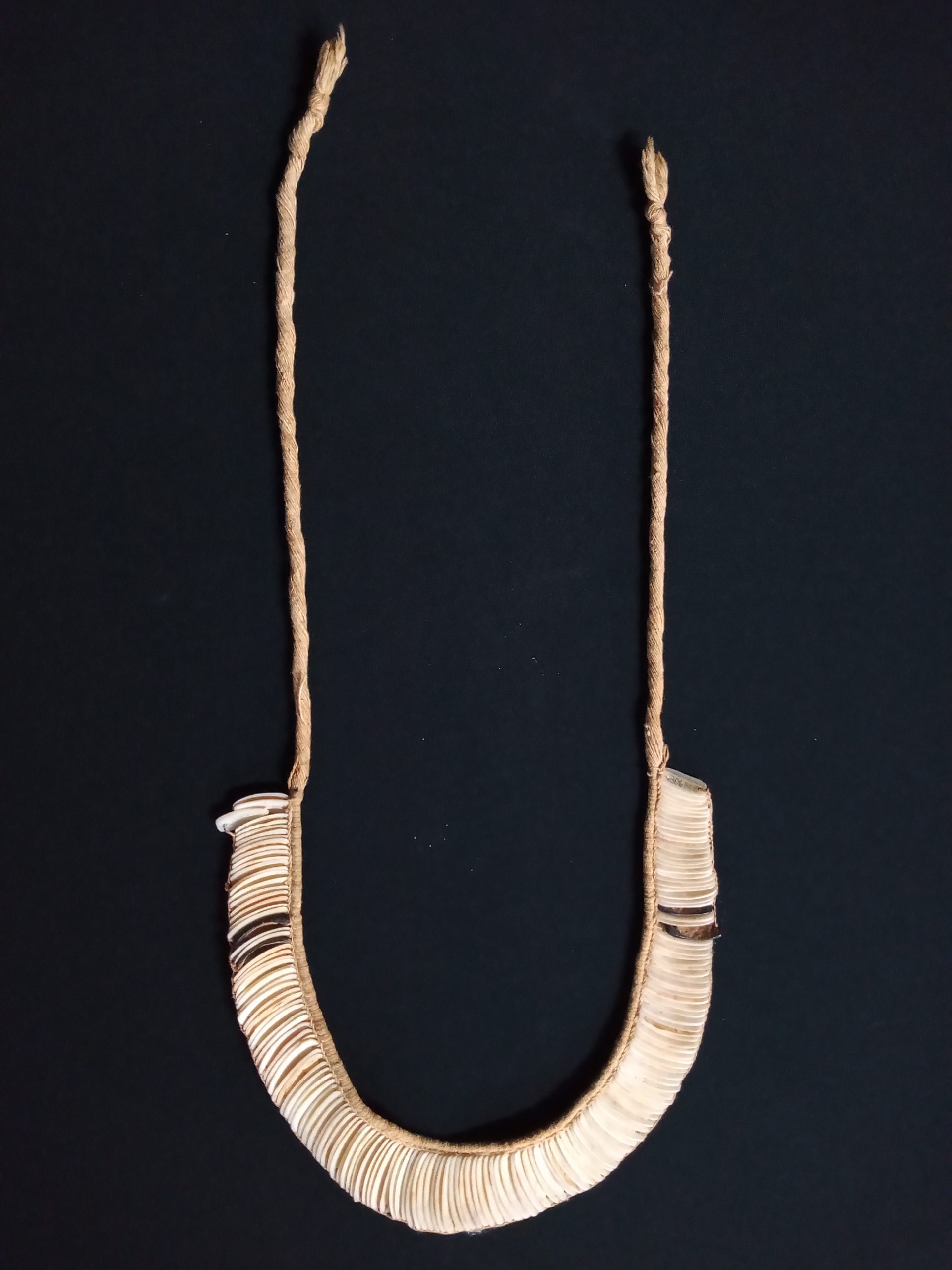 Coleção Memorial dos Povos Indígenas Item Colar de plaquetas retangulares de caramujo Documento MPI00005 Baixar Metadados ColeçãoColeção Berta RibeiroDenominação/LinguagemColarTítuloColar de plaquetas retangulares de caramujoAutoriaAutoria DesconhecidaEtniaYawalapitiClassificaçãoAdorno corporal > Produto de origem animal > Adorno corporal, colar, madrepérolaDescriçãoColar de plaquetas retangulares de caramujo (e de tucum, para contraste) com perfurações nas extremidades por onde passa um cordel de algodão que lhes confere uma forma abaulada e semi-sobreposta.Dimensão (cm)96 cm (A)Peso (gramas)190Material/técnicaadorno corporal | algodão | conchas de caramujo do campo | tucumLocal de produçãoParque Indígena do Xingu, Mato Grosso, BrasilData de produçãoDesconhecidaCondições de reproduçãoNão há informação Continue navegando Boneca Karajá Colar de plaquetas retangulares de caramujo Voltar para a página de itens
