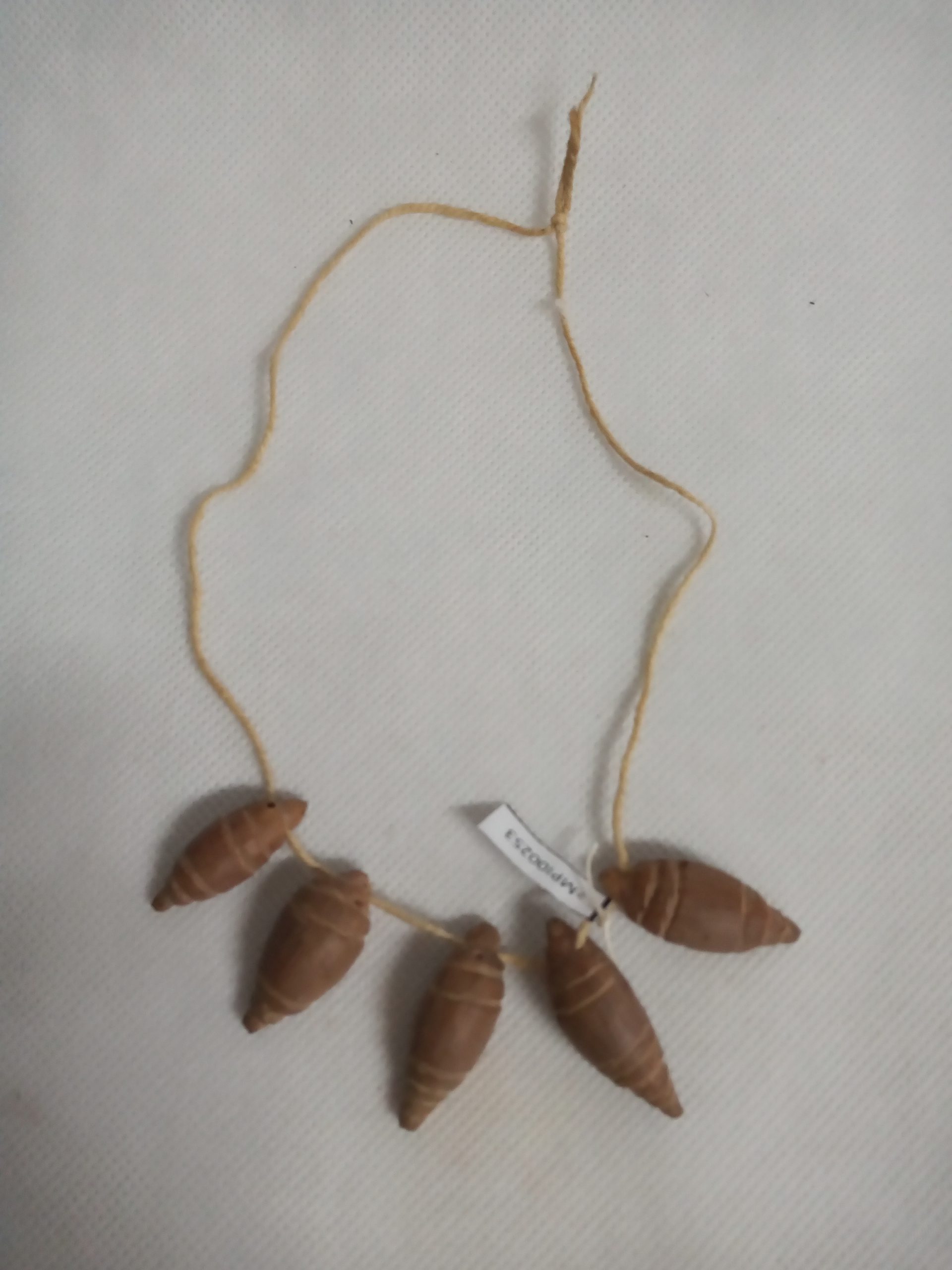 Coleção Memorial dos Povos Indígenas Item Colar miniaturas escultóricas de inajá Documento MPI00253 Baixar Metadados ColeçãoColeção Berta RibeiroDenominação/LinguagemColarTítuloColar miniaturas escultóricas de inajáAutoriaAutoria DesconhecidaEtniaKayabiClassificaçãoEquipamento de uso pessoal > Produto de origem vegetal/mineral > Adorno, colar, miniaturasDescriçãoMiniaturas escultóricas de inajá representando cinco tatus (aparentemente) enfiados pela parte superior num fio de algodão.Dimensão (cm)50 cm (P)Peso (gramas)80Material/técnicaadorno corporal | coco de inajá | escultura | fio de algodãoLocal de produçãoAlto Xingú, Mato Grosso, BrasilData de produçãoDesconhecidaCondições de reproduçãoNão há informação Continue navegando Colar de canutilhos de osso Colar de canutilhos de osso Voltar para a página de itens