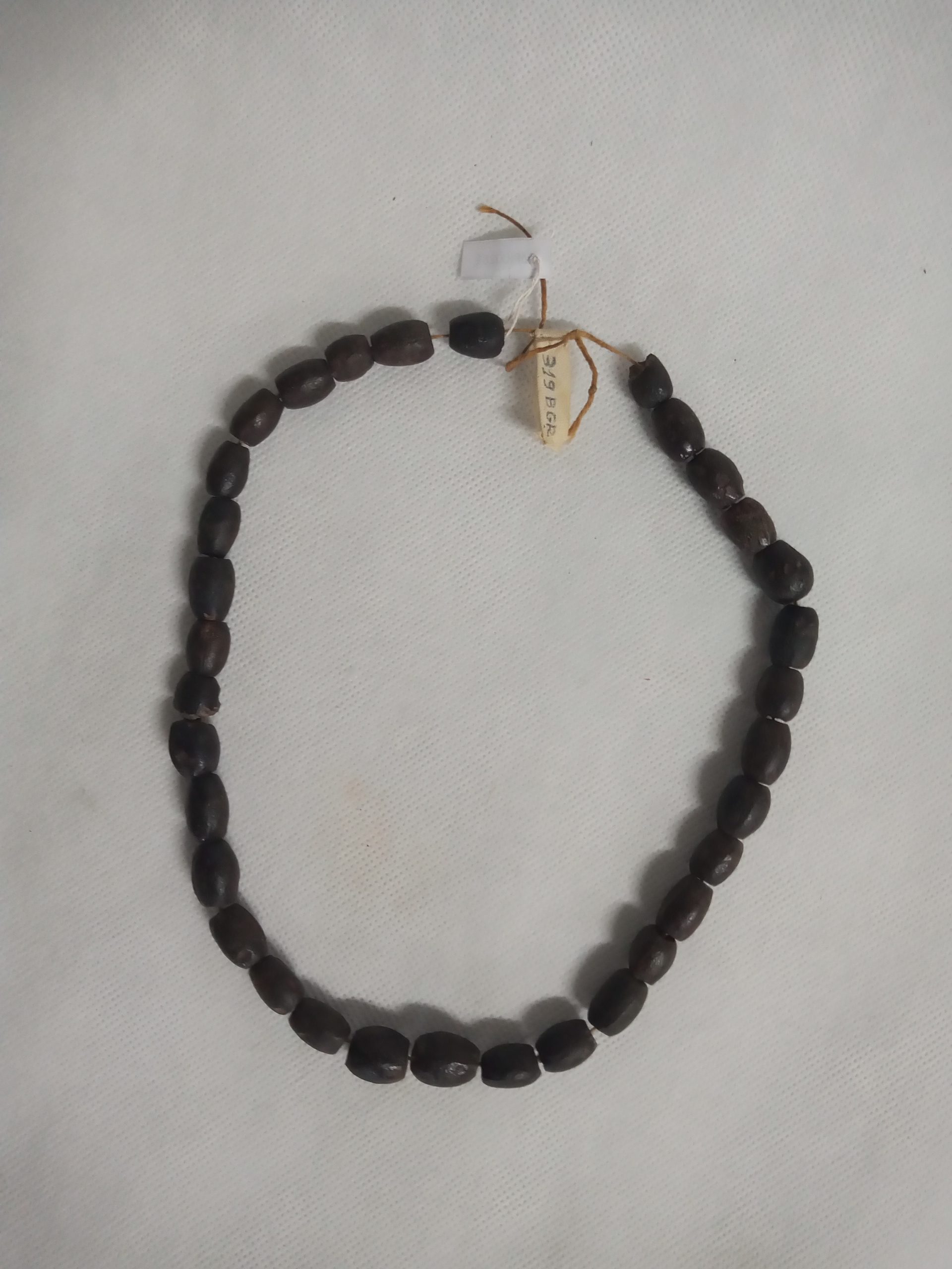 Coleção Memorial dos Povos Indígenas Item Colar de pingente de quartzo ou colar de Pajé Documento MPI00261 Baixar Metadados ColeçãoColeção Berta RibeiroDenominação/LinguagemColarTítuloColar de pingente de quartzo ou colar de PajéAutoriaAutoria DesconhecidaEtniaDo Alto XingúClassificaçãoEquipamento de uso pessoal > Produto de origem vegetal/mineral > Adorno corporal, colar, quartzoDescriçãoAdorno de pescoço constituído de uma peça de quartzo , perfurado junto ao ápice, ladeado de uma fieira de contas graúdas negras, perfuradas e enfiadas num cordel.Dimensão (cm)62 cm (P)Peso (gramas)80Material/técnicaadorno corporal | cordel | quartzo | sementesLocal de produçãoAlto Xingú, Mato Grosso, BrasilData de produçãoDesconhecidaCondições de reproduçãoNão há informação Continue navegando Colar de sementes Colar de contas de coco tucum Voltar para a página de itens