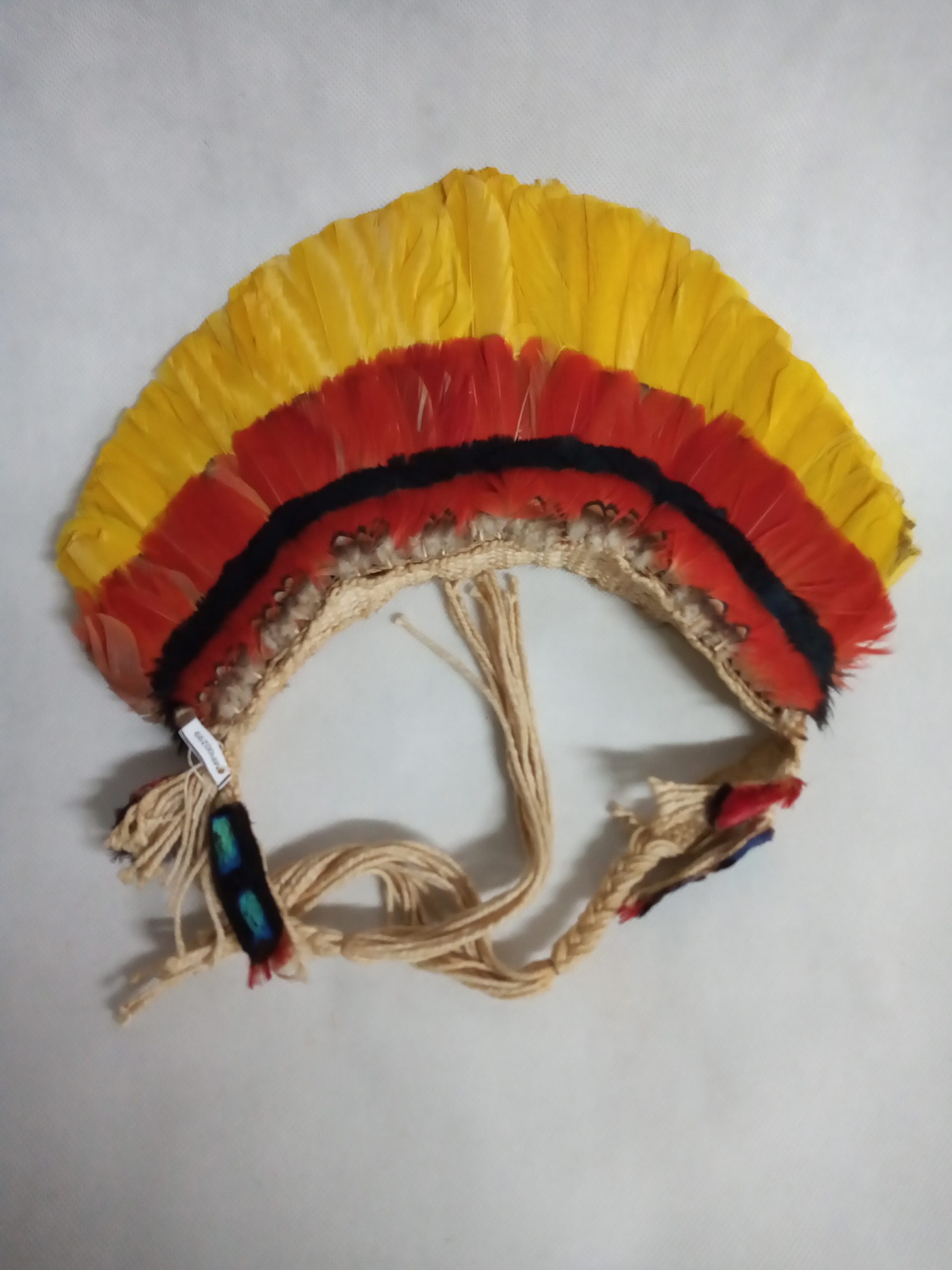 Diadema horizontal de uso masculino composto de uma faixa tecida de algodão emplumada perpendicularmente com camadas sucessivas de fieiras de penas dispostas em ordem crescente de fora para dentro em ambas as faces do diadema. São empregadas plumas pardo-matizadas com brilho de bronze de pomba trocal (Columba speciosa), escarlates do pescoço da arara canga (Ara macao), penas amarelas de cauda do japu (Ostinops decumanus) e, sucessivamente, vermelhas, negras, vermelhas e pardo-matizadas das referidas aves. A faixa termina em tranca e franjas soltas nas quais são apensos pingentes revestidos de pelo de saura (Phoenicercus carnifex) e de sai (Cyanerpes cyaneus).