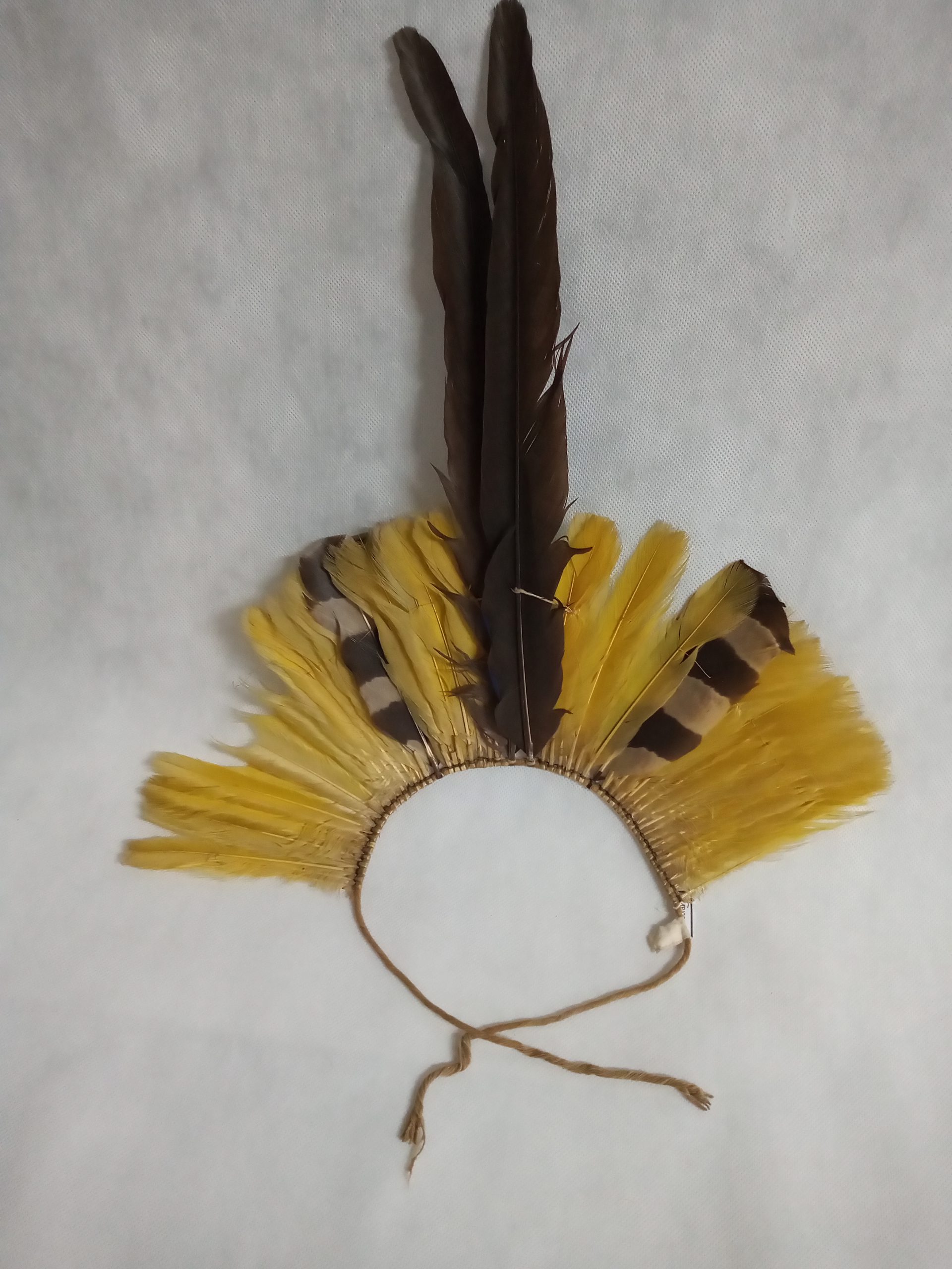 Diadema vertical de uso masculino. Compõe-se de uma fieira de penas tendo nos lados as caudais amarelas de japu (Ostinops decumanus) entremeadas por penas rajadas de gavião-de-penacho (Spizaetus ornatus), e no centro da fieira, penas caudais azuis de arara canindé (Ara ararauna) presas com amarrilho de algodão.