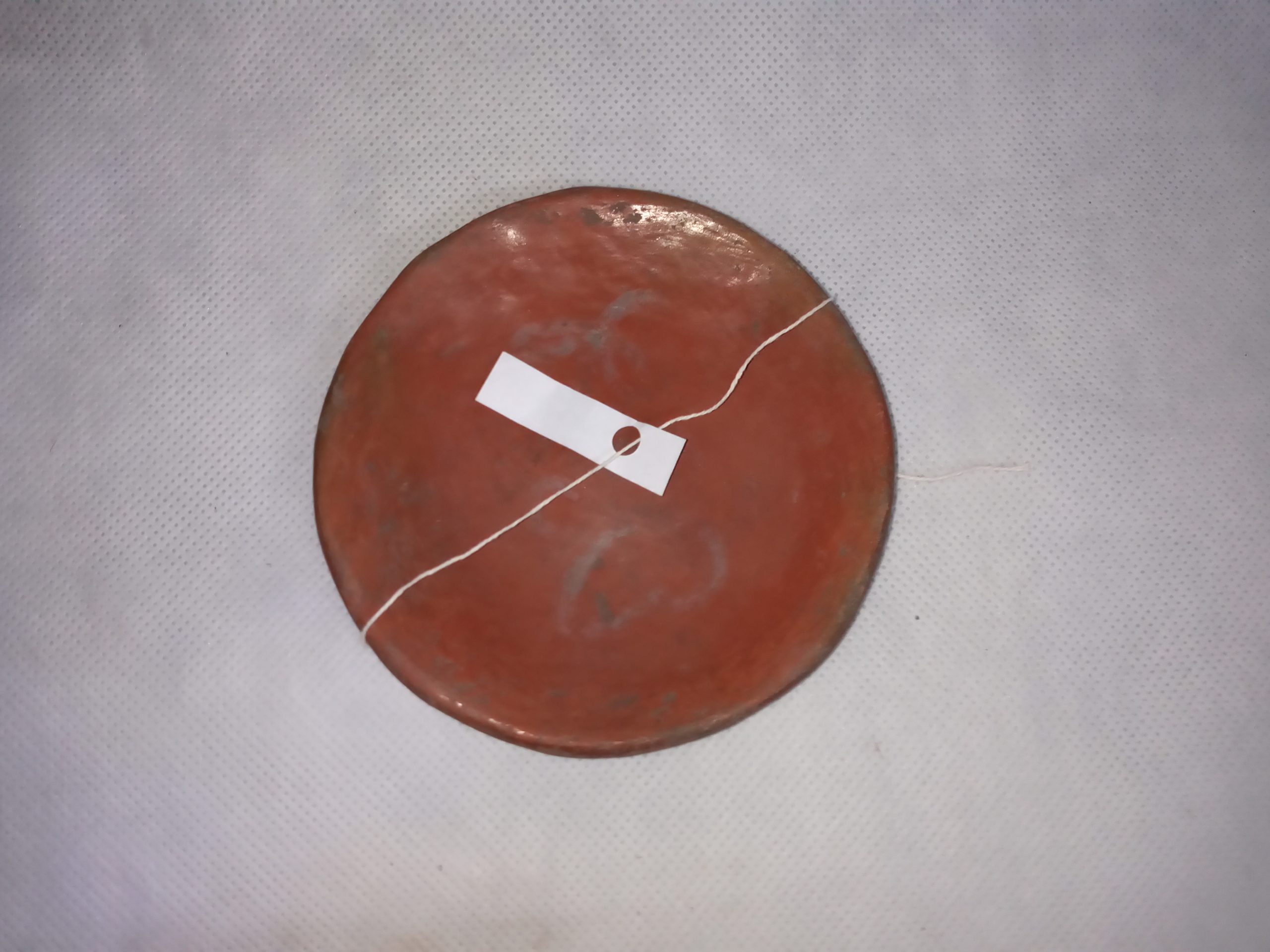 Vasilha de cerâmica platiforme, pires pequeno, usado com xícara para servir líquidos no âmbito doméstico e/ou rituais. Feita sob encomenda (todo um jogo de 10). Superfície polida e decorada com motivo floral feito em branco (tabatinga).