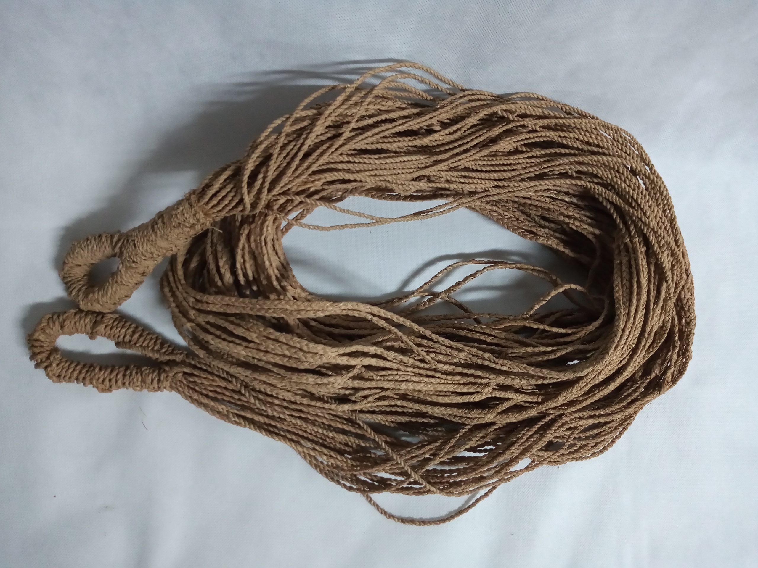 Coleção Memorial dos Povos Indígenas Item Rede de dormir Documento MPI00120 Baixar Metadados ColeçãoColeção Berta RibeiroDenominação/LinguagemRedeTítuloRede de dormirAutoriaAutoria DesconhecidaEtniaXerenteClassificaçãoEquipamento para uso doméstico > Produto de origem vegetal > Rede, entrançado, tecidoDescriçãoEspécie de leito balouçante, suspenso pelas extremidades terminadas em punhos. Rede confeccionada com Flabelos do grelo da palmeira buriti segundo a técnica de entrançamento: trabalho a dedo formando tranças.Dimensão (cm)330 cm (P)Peso (gramas)900Material/técnicaflabelos da prefoliação da palmeira buriti | tecelagemLocal de produçãoTocantins, BrasilData de produçãoDesconhecidaCondições de reproduçãoNão há informação Continue navegando Chocalho globular Rede de dormir Voltar para a página de itens