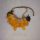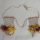 Sobrecinto confeccionado com miçangas brancas e azuis formando dois pingentes retangulares preenchidos por tecido de losangos de contas de vidro, arrematados com rosetas de plumas azuis e amarelas de arara canindé (Ara ararauna) e vermelhas de arara canga (Ara macao).