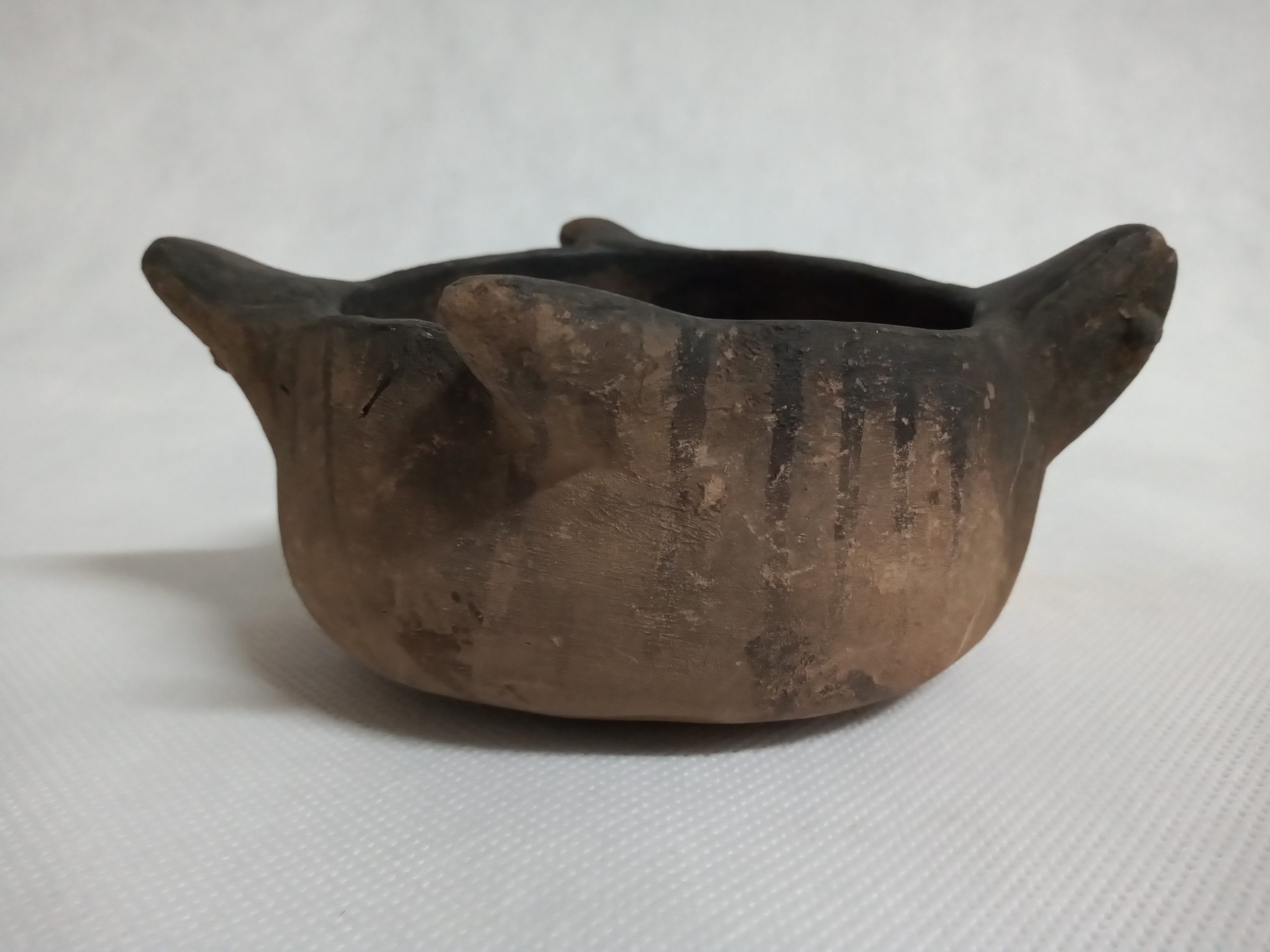 Coleção Memorial dos Povos Indígenas Item Tigela de barro zoomorfa Documento MPI00059 Baixar Metadados ColeçãoColeção Berta RibeiroDenominação/LinguagemTigelaTítuloTigela de barro zoomorfaAutoriaAutoria DesconhecidaEtniaWauráClassificaçãoEquipamento para uso doméstico > Produto de origem mineral/vegetal > Argila, cerâmica, tigelaDescriçãoTigela zoomorfa representando tartaruga, cujas características aparecem modeladas nos apêndices na borda da peça. Parte interna impermeabilizada com carvão fixado com mordente e externa decorada com motivos chevron.Dimensão (cm)14,6 cm (A) x 5,9 cm (D)Peso (gramas)120Material/técnicaargila | cerâmica | mordentes | pigmentos | pinturaLocal de produçãoParque Indígena do Xingu, Mato Grosso, BrasilData de produçãoDesconhecidaCondições de reproduçãoNão há informação Continue navegando Boneca Karajá Boneca Karajá – Teiú Voltar para a página de itens