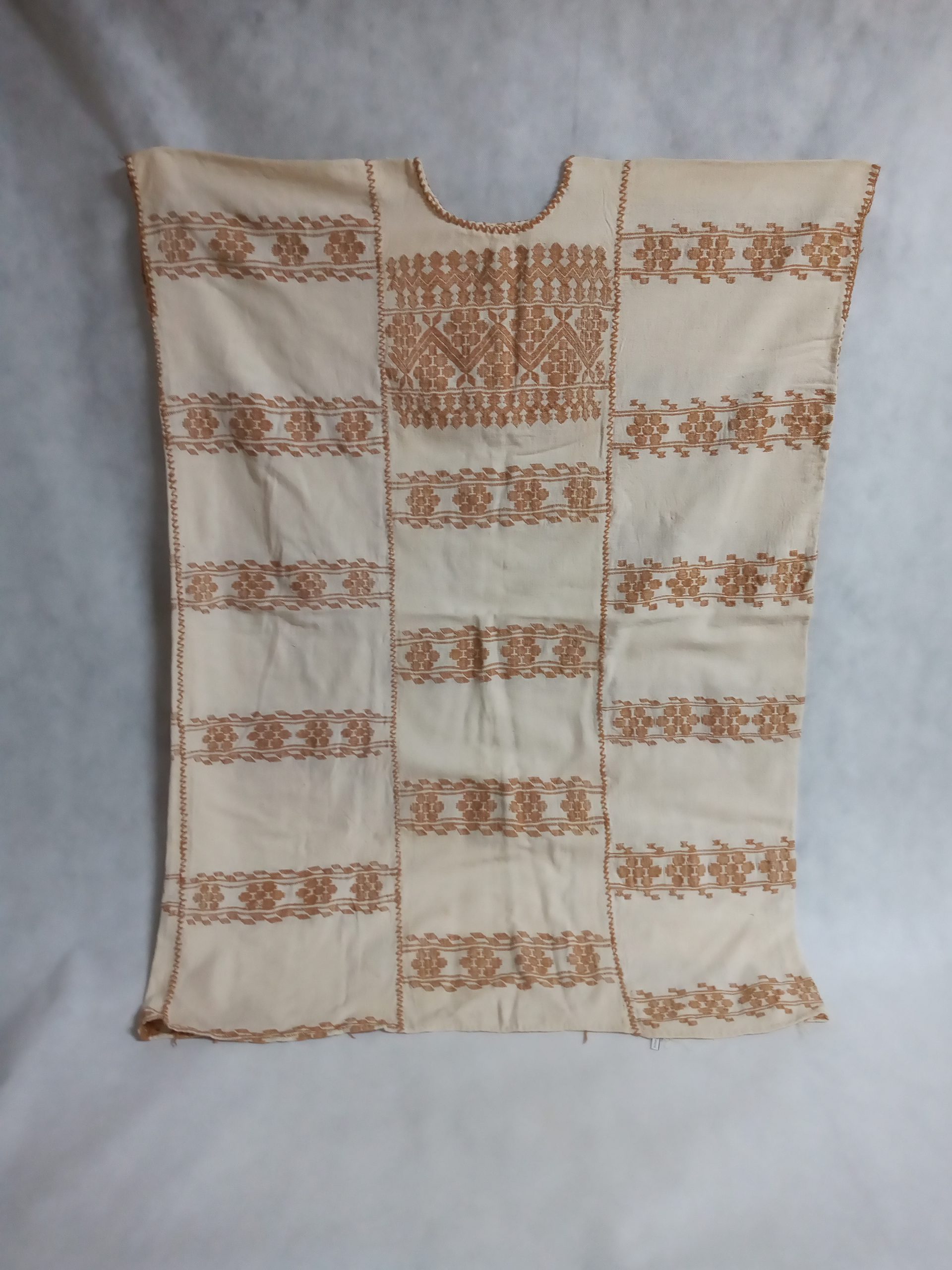Coleção Memorial dos Povos Indígenas Item Vestido de algodão Documento MPI00298 Baixar Metadados ColeçãoColeção Berta RibeiroDenominação/LinguagemVestidoTítuloVestido de algodãoAutoriaAutoria DesconhecidaEtniaCamponeses Huipil - AmuzgosClassificaçãoEquipamento de uso pessoal > Produto de origem vegetal > Indumentária, vestido, tecidoDescriçãoVestido tecido em tear com linha não industrial de algodão na cor natural e cor de caramelo (nativa) em panos costurados entre si. A linha caramelo forma desenhos de flores e folha no entretecimento (1/1).Dimensão (cm)117 cm (A) x 93 cm (L)Peso (gramas)340Material/técnicaalgodão | tecelagemLocal de produçãoOaxaca, MéxicoData de produçãoDesconhecidaCondições de reproduçãoNão há informação Continue navegando Sacola tecida Diadema horizontal Voltar para a página de itens