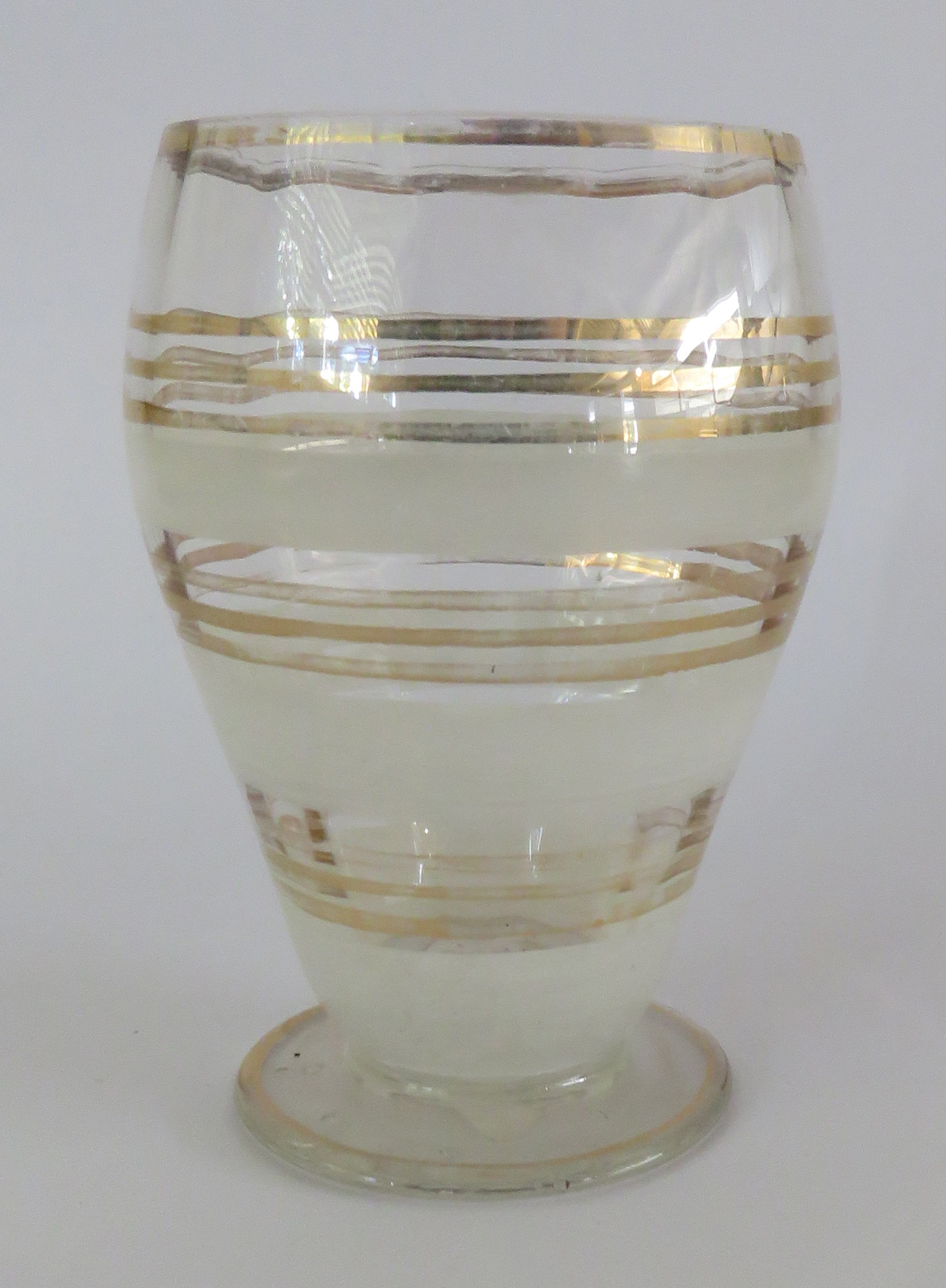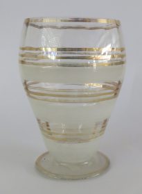 Coleção Museu do Catetinho Item Copo Documento MC00410 Baixar Metadados Miniatura TítuloCopoProdutorNão se aplicaDenominaçãoCopo com péMaterial/TécnicavidroDimensão (cm)10,5x7ØPeso (gramas)125DescriçãoCopo de vidro transparente com pé. Decoração com conjuntos de 3 frisos dourados e linhas jateadas, 3 conjuntos.Classificação05. Interiores > 05.6. Utensílio de cozinha/mesa Continue navegando Moringa Copo Voltar para a página de itens
