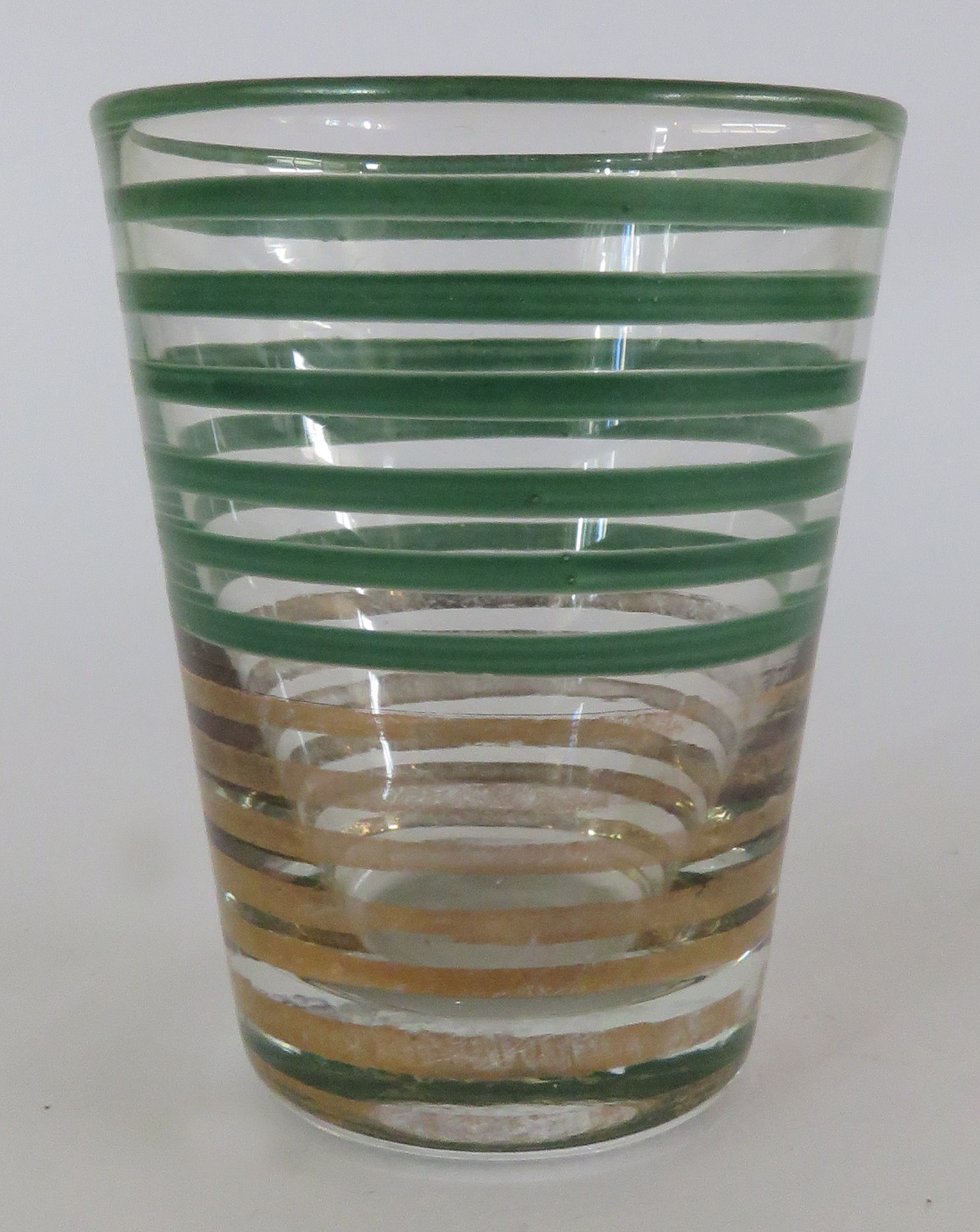 Coleção Museu do Catetinho Item Copo Documento MC00403 Baixar Metadados Miniatura TítuloCopoProdutorNão se aplicaDenominaçãoCopo de dose em vidro incolorMaterial/TécnicavidroDimensão (cm)7x6ØPeso (gramas)83DescriçãoCopo de vidro transparente. Decoração com 7 frisos dourados na parte de baixo e 7 frisos verdes na parte de cima.Classificação05. Interiores > 05.6. Utensílio de cozinha/mesa Continue navegando Travesseiro Colcha Voltar para a página de itens