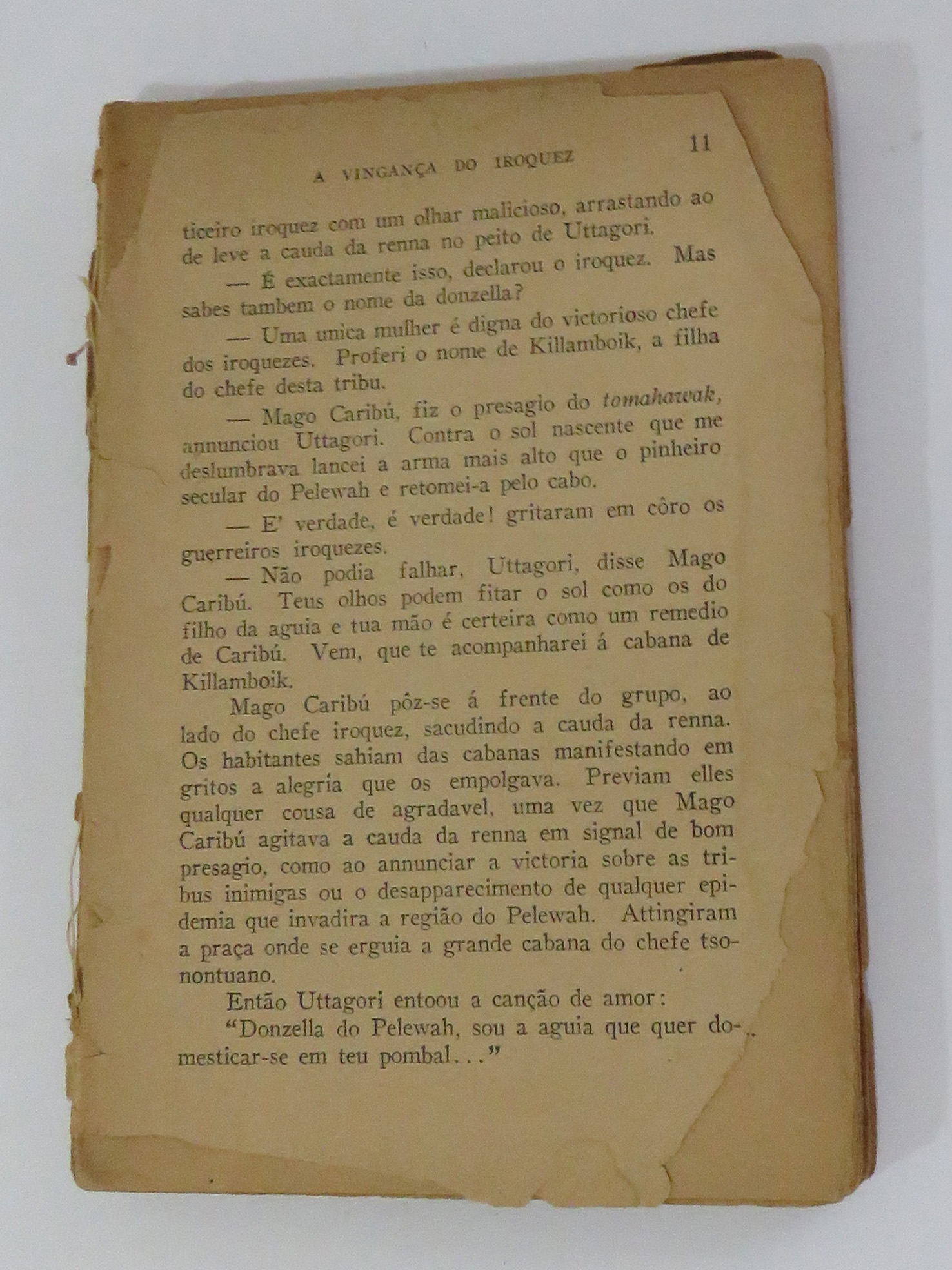 Coleção Museu do Catetinho Item “A vingança do Iroquez” Documento MC00436 Baixar Metadados Miniatura Título"A vingança do Iroquez"AutoriaSalgari, EmílioProdutorCompanhia Editora NacionalDenominaçãoLivroMaterial/TécnicapapelDimensão (cm)20x13,5x1,7Peso (gramas)215Local de produçãoRio de Janeiro/BrasilData1947DescriçãoLivro "A vingança do Iroquez", de Emilio Salgari, editora Companhia Editora Nacional, com 188 páginas. Sem capa. Numeração "98A-6-010-01.01" marcada na parte interna da contra capa.Classificação10. Comunicação > 10.1. Documento Continue navegando “Fatos e Fotos – Gente, O Brasil chora JK”, nº 785, set 1976 “Da república a ditadura” Voltar para a página de itens