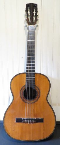 Coleção Museu do Catetinho Item Violão Documento MC00125 Baixar Metadados Miniatura TítuloViolãoProdutorDel VecchioDenominaçãoViolão de 6 cordas.Material/Técnicamadeira | metalDimensão (cm)98x36x12Peso (gramas)1667Local de produçãoSão Paulo/São Paulo/BrasilDescriçãoViolão de seis cordas da marca Del Vecchio. Madeira clara na parte frontal e madeira escura na parte de trás, lateral e braço. Supostamente pertencente a Dilermando Reis.Classificação06. Trabalho > 06.10. Instrumento musical Continue navegando Copo Estojo de violão Voltar para a página de itens